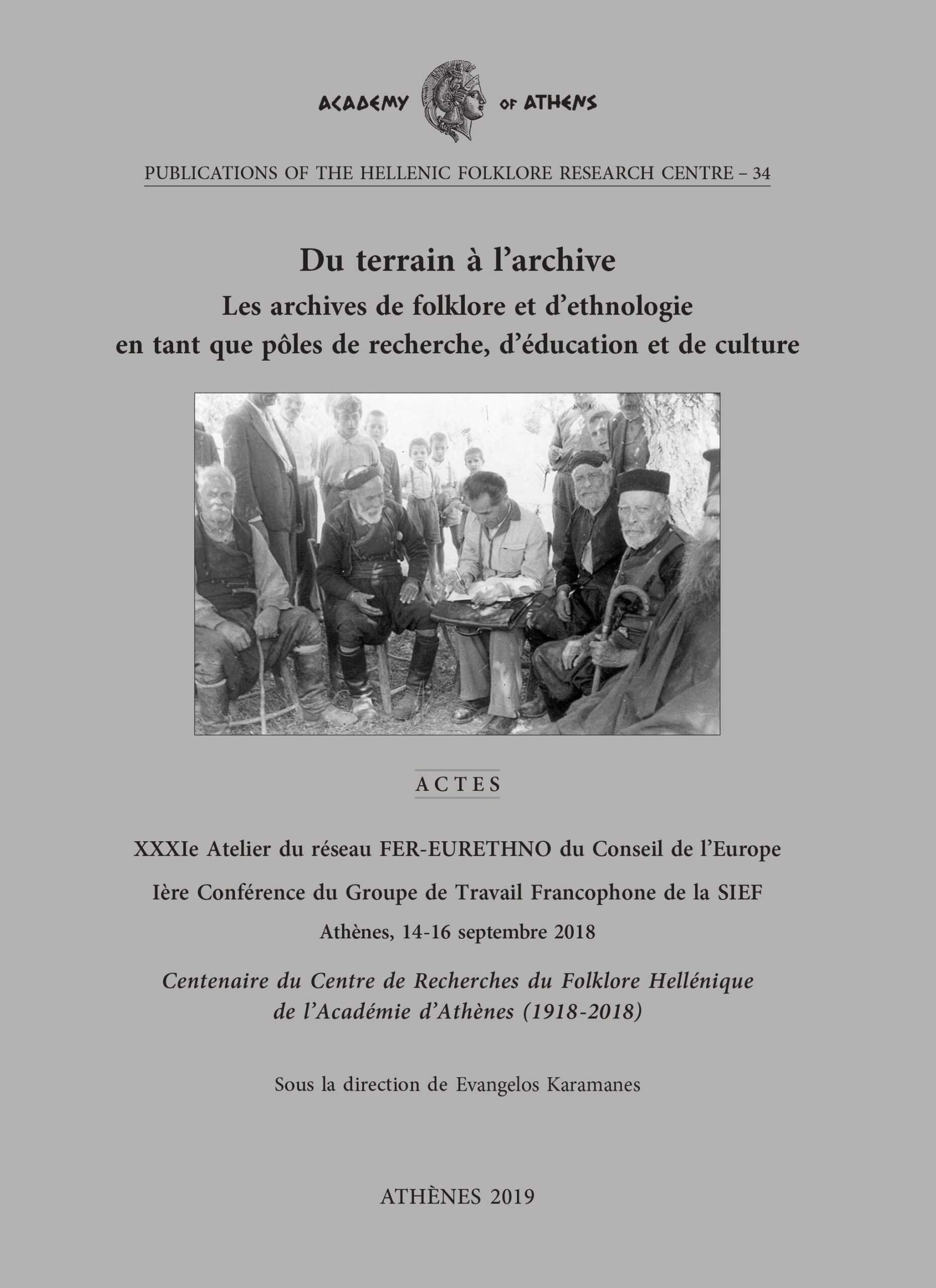 Πρακτικά του Διεθνούς Συνεδρίου με αφορμή την συμπλήρωση 100 χρόνων από την ίδρυση του Κέντρου Λαογραφίας της Ακαδημίας Αθηνών (1918-2018). To Συνέδριο πραγματοποιήθηκε στην Ακαδημία Αθηνών στις 14-16 Σεπτεμβρίου 2018 με θέμα “Από την επιτόπια έρευνα στο αρχείο: τα λαογραφικά και εθνολογικά αρχεία ως πόλοι έρευνας, εκπαίδευσης και πολιτισμού”.