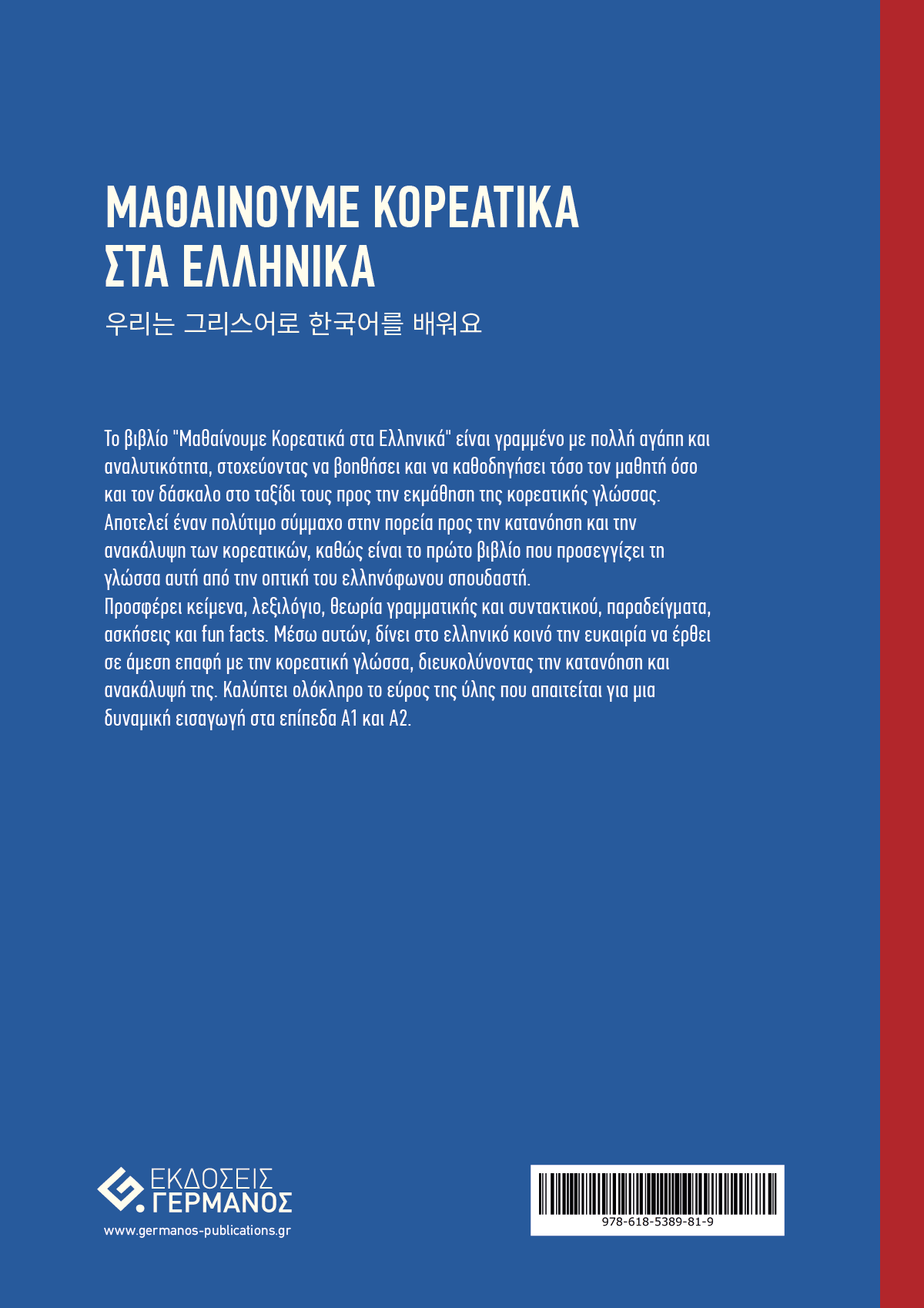 - Είναι το μοναδικό βιβλίο που προσεγγίζει την κορεατική γλώσσα από τη σκοπιά του Έλληνα μαθητή.