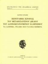 Ο τόμος αποτελεί τη συνέχεια του “Περιγράμματος του μεταβυζαντινού δικαίου”, που εκδόθηκε το 2011 και περιλάμβανε τα ελληνικά κείμενα. Ο παρών τόμος περιλαμβάνει τις λατινικές, ιταλικές και γαλλικές νομικές πηγές του λατινοκρατούμενου Ελληνισμού πού έχουν δημοσιευτεί από τον 19ο αιώνα έως το 2007 και αφορούν τις περιοχές εκείνες που, μετά το 1204, πέρασαν κάτω από δυτικές κυριαρχίες. Το δίκαιο των περιοχών αυτών, παρά τις αμφισβητήσεις που έχουν διατυπωθεί στο παρελθόν, εντάσσεται στην έννοια του “μεταβυζαντινού δικαίου”, αφού οι περισσότερες από τις περιοχές αυτές δεν επανήλθαν ποτέ στους κόλπους του βυζαντινού κράτους, αλλά παρέμειναν σε δυτική κυριαρχία έως την ενσωμάτωσή τους στην οθωμανική αυτοκρατορία ή αργότερα στο ελληνικό κράτος.