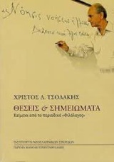 Περιλαμβάνονται, λοιπόν, εδώ “Θέσεις και σημειώματα” του Χρίστου Τσολάκη που δημοσιεύθηκαν στον “Φιλόλογο” στα τεύχη 84-147 (1996-2012), και επιπλέον κείμενα του τεύχους 149 (2012), που εκδόθηκε αμέσως μετά τον θάνατό του και ήταν αφιερωμένο στον ίδιο.